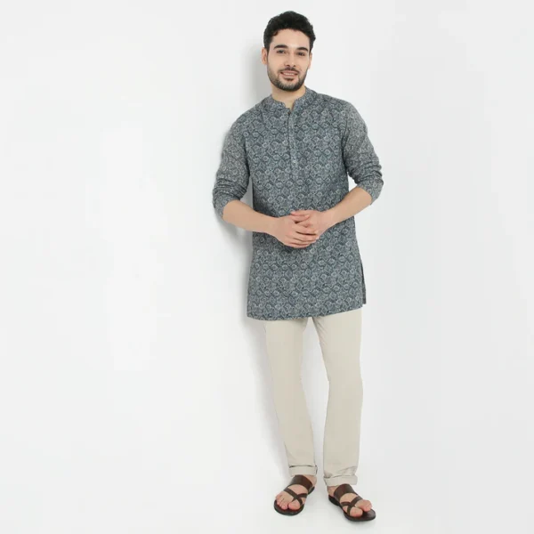 This printed pattern kurta has a mandarin collar and full sleeve. Made from cotton polyester, it is soft and comfortable to wear.